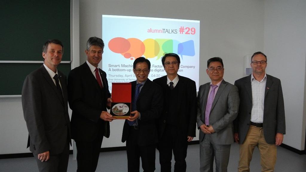4月27日下午,代表团访问了奥地利格拉茨技术大学,会见了该校校长Kainz Harald教授、以及主管科研的副校长Bischof Horst教授等专家学者,出席了该校专门为代表团组织的学术论坛,代表团听取了该校教授们围绕先进材料、生物技术、太阳能电池、人造皮肤、金属有机陶瓷技术、大数据与人工智能、光纤传感材料、3D电子显微技术等研究领域的汇报,并与他们进行了交流和讨论,双方认为,可在双方共同感兴趣的优势研究领域首先开展合作研究,双方同意在学校层面探讨建立校际合作关系,推动双方开展深度的科研与人才培养的合作。