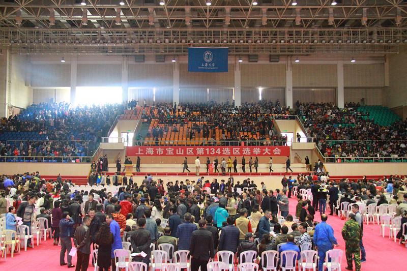 宝山校区选举大会主会场体育馆布置一新,大幅会标十分醒目,红色投票箱分放场内,现场气氛庄重而热烈。选举大会上,主持人在确定参加选举人数达到法律规定要求之后,按照规定流程,宣读了总监票人、监票人以及计票人员名单,并提请选民讨论通过。在总监票人宣读投票选举注意事项后,选民根据自己的意愿认真填写选票,并在投票箱投下神圣的一票。投票结束后,计票人员在监票人员监督下集中清点票数,主持人宣布选举有效。经过紧张有序的统计,总监票人现场宣读了统计结果,三个选区共五名正式代表候选人当选。会上,主持人对选民的参与和相关部门、单位、选民小组的积极支持与密切配合表示了感谢。