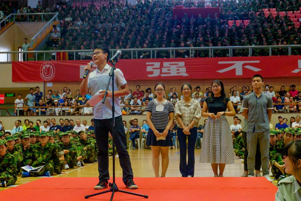 2016级新生以视频对话的方式说出了对于上大的初体验,5名在校生则结合自己的经历,分别从勇敢适应、科学定位、确立目标、探索路径、突破自我等角度向新生展示了丰富多彩的校园生活和学校人才培养的平台、资源,以朋辈对话的方式讲述他们一路走来的心路历程和收获。随后,校学生会主席华旻磊带领全体新生面向校旗宣誓,承诺今后将牢记校训、心系祖国和人民,求真务实、开创未来。