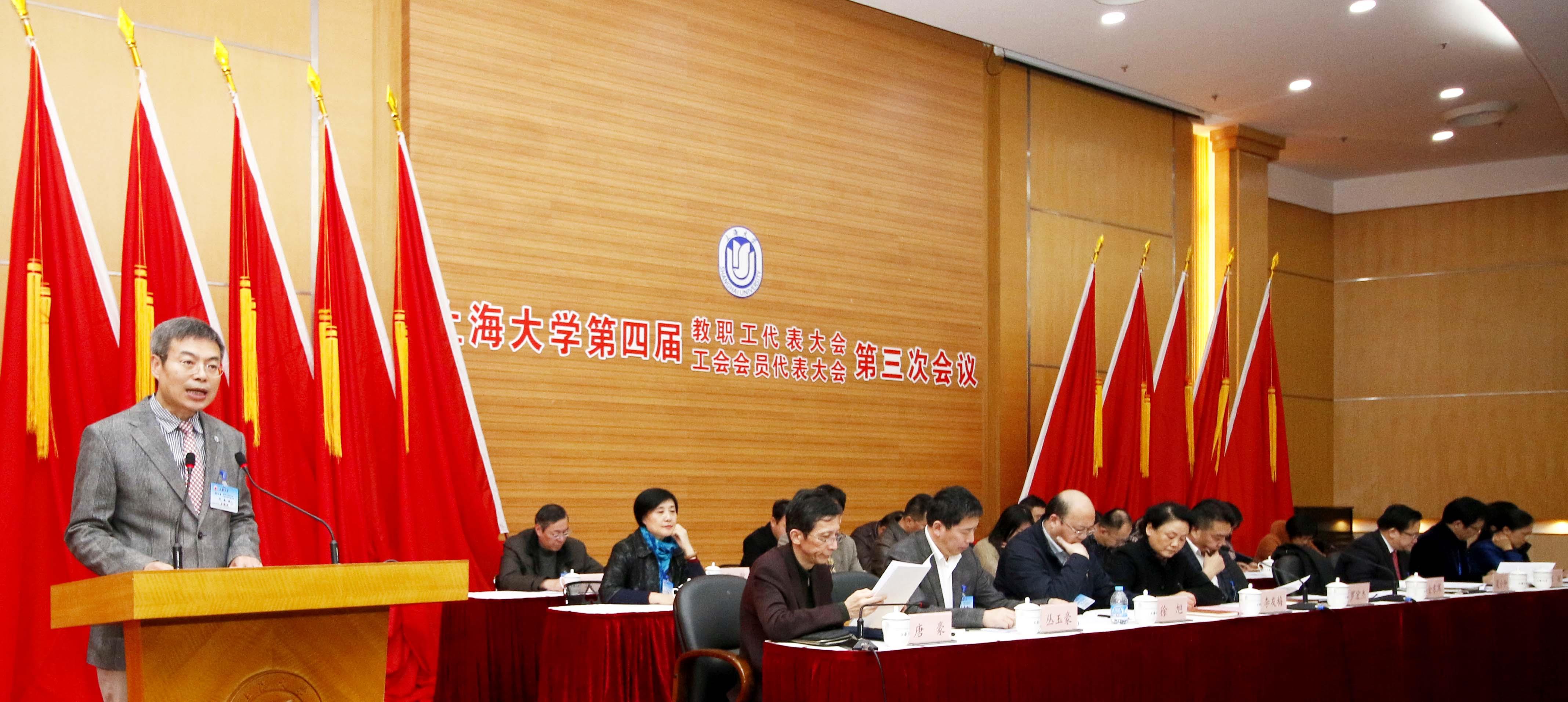 校党委副书记、纪委书记、校工会主席夏小和同志作了《2015年度工会工作报告》。他指出,2015年,我校各级工会组织紧密围绕、主动对接学校中心工作,服务发展大局,从提高学校凝聚力、教职工归属感的高度做好工会工作,以用心打造教职工信赖的“家”为主线,以年度关键绩效指标为责任目标, 努力引导广大教职工将学校的事业发展同个人的全面发展紧密结合起来。常规工作扎实推进,创新工作不断探索,为把我校建成一流大学发挥了更大的作用。他表示,2016年,校工会将继续围绕学校中心工作和发展大局,在校党委的领导下,以增强校院两级工会组织的政治性、先进性、群众性为主线,从巩固党执政的阶级基础和群众基础的政治高度,更好地践行群众路线,开展提升教职工素质系列活动和服务教职工工作、生活需求等系列活动,发挥好工会组织桥梁、纽带、支柱作用,构建学校党政与教职工群众的“命运共同体”。