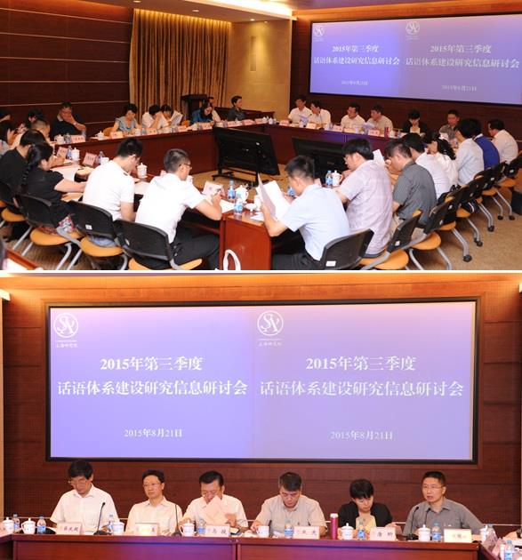 马援、燕爽等领导在会上讲话。马援充分肯定了今年上半年话语体系建设中各成员单位的各项工作成果,希望各协调成员单位继续发挥各自优势,协同作战,共同推进话语体系建设工作。燕爽指出,中国话语体系建设不但是一项战略任务、时代任务,而且是宣传战线的一项根本任务和长期任务,上海市期待能够参与中国话语体系构建的研究,希望上海研究院作为院市合作的窗口能为中国话语体系建设贡献力量。