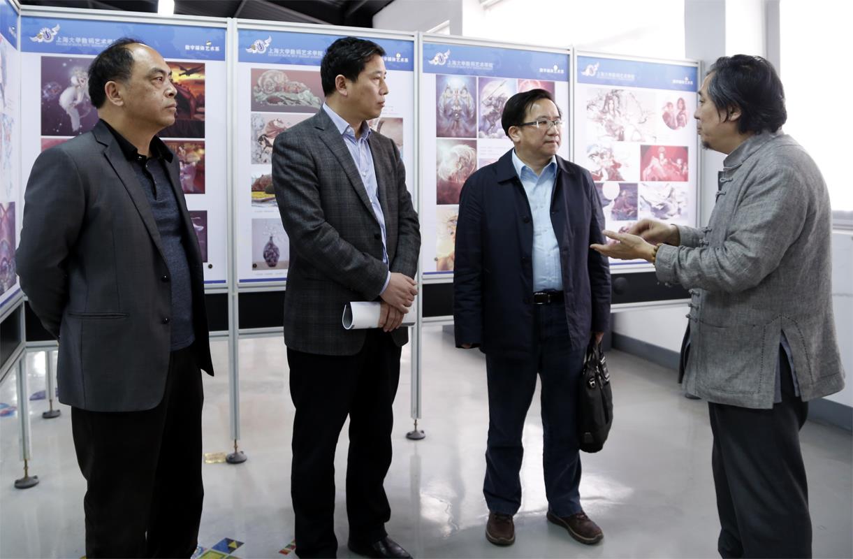 4月21日下午,校党委副书记、纪委书记夏小和,校党委常委、副校长丛玉豪一行来到数码艺术学院调研。在数码艺术学院院长仲星明,党委书记陈大明的带领下,两位校领导先后视察了数码艺术学院师生优秀作品展、公共艺术研究院项目展、国学与数字传媒工作室、非遗工作室月份牌擦笔水彩年画技法研究中心、3D打印工作室、工业设计产品中心等重要展区及产学研工作室。结合各个展览的优秀作品以及工作室的介绍,仲星明院长向两位校领导汇报了学院专业设置以及“产学研”紧密结合的办学特色,两位校领导充分肯定了学院在办学道路上所做出的努力和成绩。