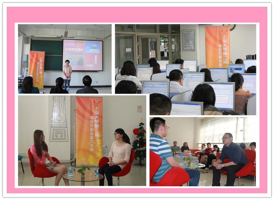 本届展示大赛共设置五项环节,以便全面细致地考察每名辅导员的职业能力。内容分别为:辅导员工作基本知识测试;学生情况熟知程度测试;自我展示与演讲;博文写作与谈心谈话情景再现。我校全体专职辅导员参加了“辅导员工作基本知识测试”和“学生情况熟知程度测试”两个项目的基础测试环节。在此基础上,通过学院(系)推荐及自荐,共有47位专职辅导员参加所有五个环节的比赛。