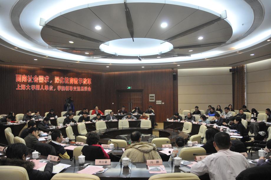 12月26日下午,“面向社会需求,深化教育教学改革”——用人单位、校院领导交流恳谈会在我校宝山校区国际会议中心举行。学校党委常委、副校长叶志明教授、党委常委翁培奋和我校校内外就业专家顾问、学院院长书记等出席了恳谈会,来自上汽集团、工商银行、诺基亚西门子公司、市安全局等各行业的15家集团公司领导及人力资源部经理应邀参加了恳谈会,我校部分专业课教师和各年级学生代表也参加了交流恳谈会。会议由我校教务处处长王光东主持。