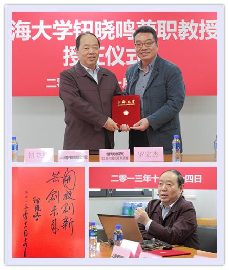作为管理学院的兼职教授,今后钮教授会经常与师生分享上海实施开放创新的新理念和新实践,并为管理学院在“政用产学研”的合作中助力。钮晓鸣教授此次不但以一场获得满堂彩的报告献礼管理学院三十周年院庆,更是在讲座结束后欣然接受邀请,为管理学院院庆题写贺词:“开放创新,共创未来”。