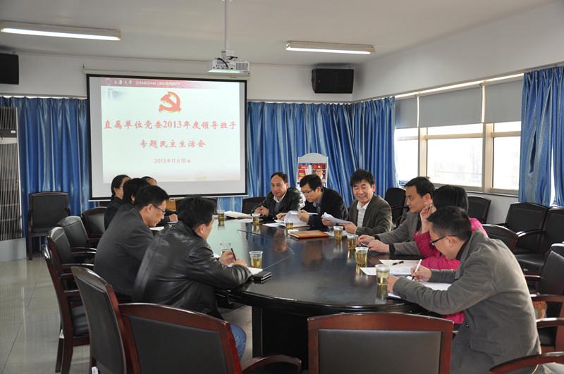 11月18日下午,直属单位党委在校本部D楼直属单位教工之家召开2013年度专题民主生活会。校党委书记于信汇,校党办主任、机关党委书记余洋,校督导一组组长竺剑,副组长余志龙、姜继平,校党委组织部副部长沈艺出席了会议。生活会由直属单位党委书记陆翠兰主持。