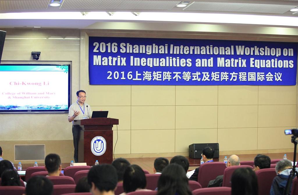 本次会议邀请了31位知名专家做了精彩的学术报告。加拿大多伦多大学的Man-Duen Choi教授作了题为“Non-linear inequalities for positive linear maps”的大会主旨报告,Chi-Kwong Li教授、台湾交通大学Pei Yuan Wu教授、美国爱荷华州立大学 Yiu-Tung Poon教授、美国Auburn大学Ming Liao、美国诺瓦东南大学Fuzhen Zhang教授、韩国首尔大学Seung-Hyeok Kye教授、美国蒙特克莱尔州立大学Aihua Li教授、加拿大曼尼托巴大学Yang Zhang教授、美国德州大学阿灵顿分校Ren-Cang Li教授、美国Auburn大学Tin-Yau Tam教授、香港理工大学 Raymond Nung-Sing Sze教授、台湾大学教授Hwa-Long Gau教授、日本东洋大学Takeaki Yamazaki教授、台湾中山大学Ngai-Ching Wong教授、美国洛约拉大学马里兰Jiyuan Tao教授等30多名著名数学家作了大会报告。这些报告充分反映了“矩阵不等式及矩阵方程”科研工作者在学科前沿、交叉领域所取得的重要研究进展。参加会议的师生发言踊跃,交流思想,分享心得。研讨会于10日中午圆满落幕。
