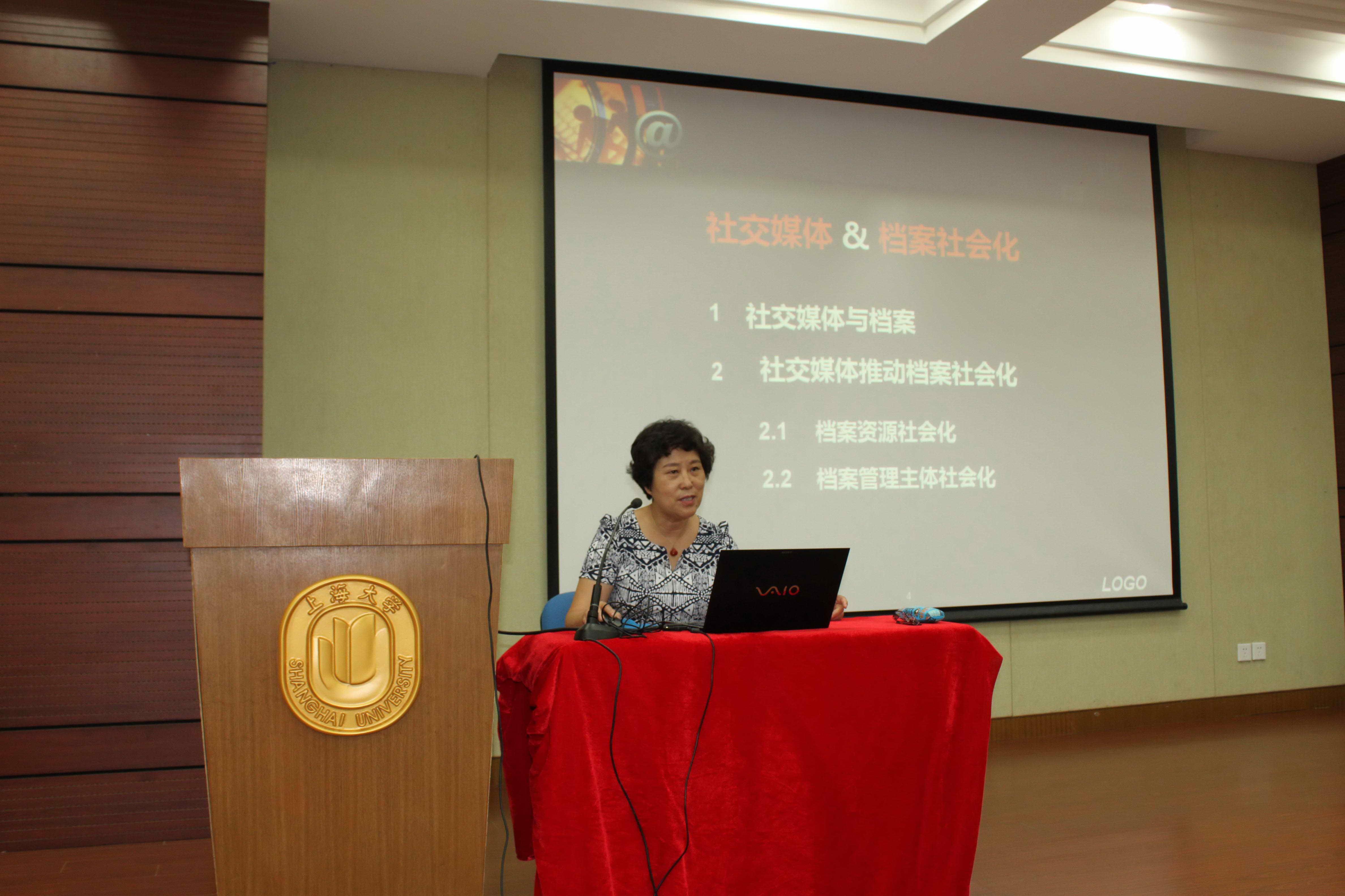 9月18日下午3点,国务院学位委员会图书情报与档案管理学科评议组召集人、教育部社会科学委员会委员、教育部档案学科教学指导委员会主任、中国人民大学原常务副校长冯惠玲教授在蔡冠深讲堂为图书情报档案系师生带来了一场以“社交媒体与档案社会化”为主题的学术讲座。图情档系主任金波教授、党总支书记丁华东教授,图情档系其他专业教师以及图情档系全体研究生同学聆听了此次讲座。
