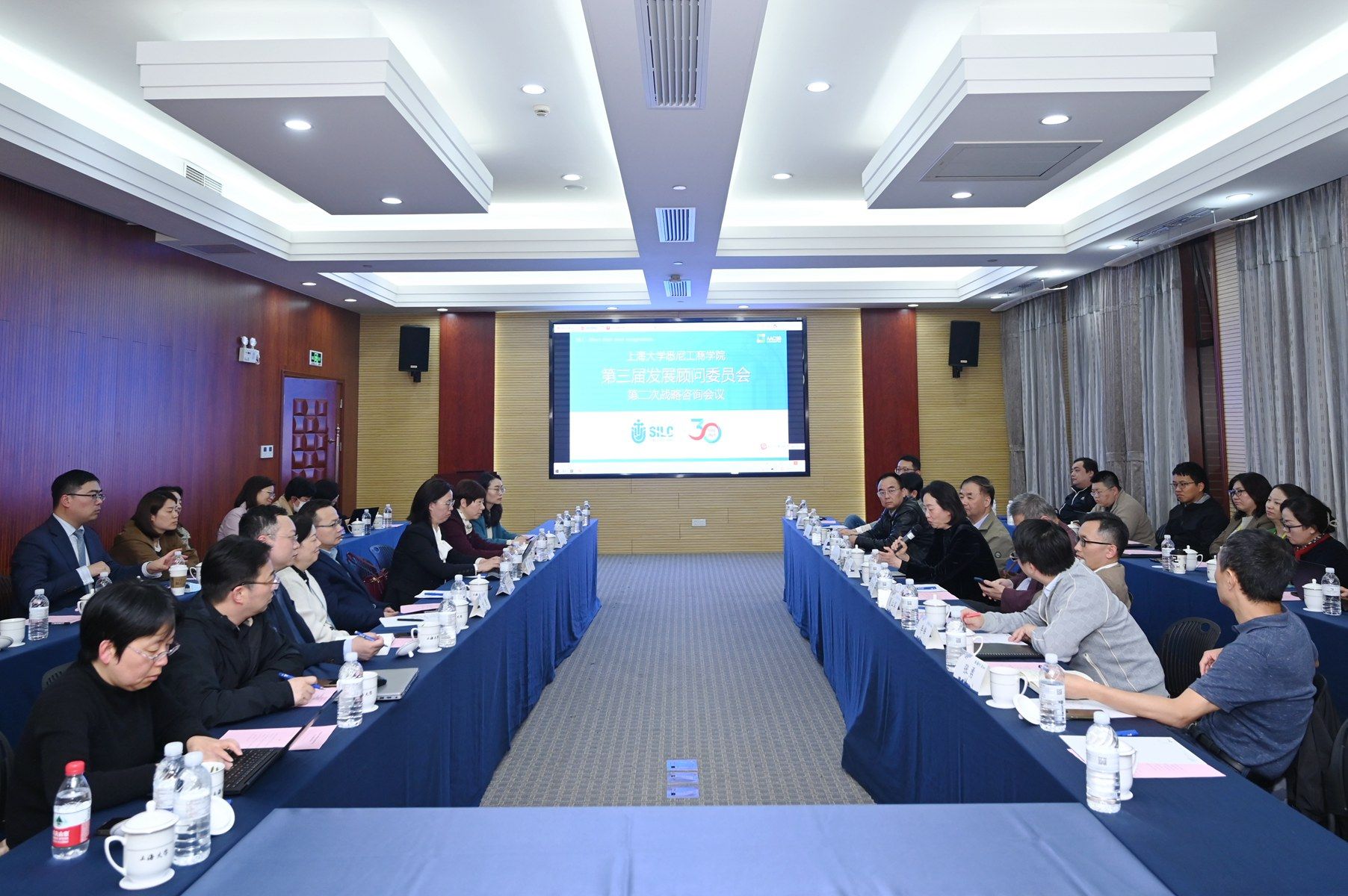 4月15日下午,学院第三届顾问委员会第二次战略咨询会议在延长校区乐乎楼乐论厅举行。出席本次会议的顾问委员有:顾问委员会主席、上海电机学院校长龚思怡、教育部高校思政工作创新发展中心(上海建桥学院)主任江彦桥、天津大学马寅初经济学院创院院长张中祥、上海交通大学二级教授夏立军、上海高顿企业管理咨询有限公司董事长李锋、启高投资管理(上海)有限公司主管合伙人张勇、上海儒竞科技股份有限公司管理部部长刘伟光、上海达岸企业管理咨询有限公司合伙人任剑婷、境洁环保科技(上海)有限公司总经理程思祺。学院领导班子及全体中层干部参加本次会议。会议由学院党委书记吕康娟、副院长方慧主持。