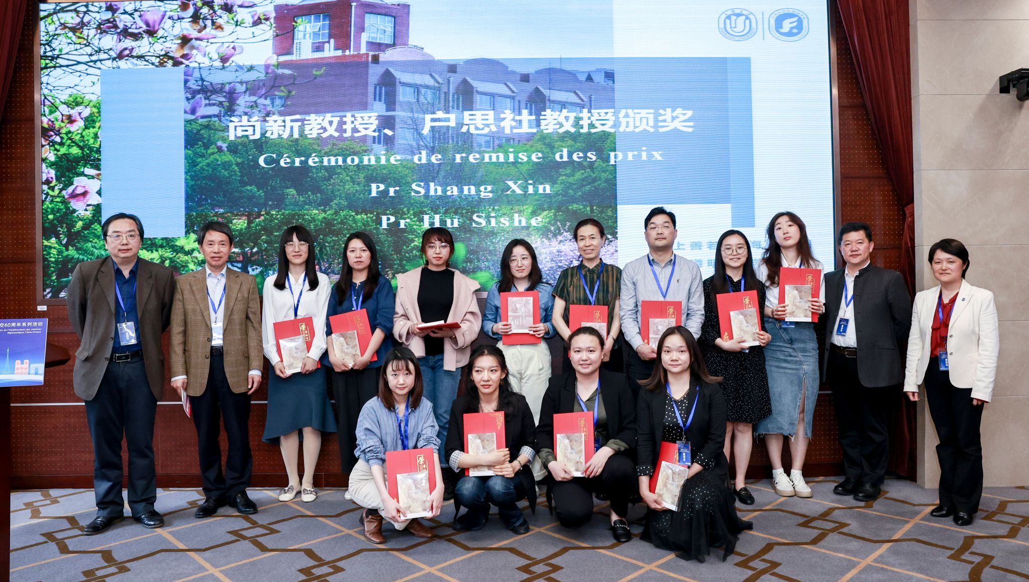 分论坛结束后,法语系主任王文新教授主持专家评议及大会闭幕式。首先,户思社教授对研讨会成果进行了总点评,着重强调了杜拉斯研究所具有的代表性意义,指出这位伟大的法国女性其生命及书写过程体现了东西方文化的碰撞与交融,其著作及相关研究不仅将促进中法文学与人文研究,更将继续有利于世界不同文明间的对话,有助于对世界局部文化冲突的反思及寻找和解方案。随后,尚新院长宣布了论文交流获奖名单,并与户思社教授、吴蔚书记一起为获奖老师颁奖,获奖者有幸获赠户思社教授的新著《淤泥与纯洁:寻找杜拉斯》,外国语学院向全体与会专家学者赠送黄荭教授的新著《我们仍在谈论杜拉斯》,两部专著由中信出版集团出版,皆为目前杜拉斯与法国文学研究的抗鼎之作。