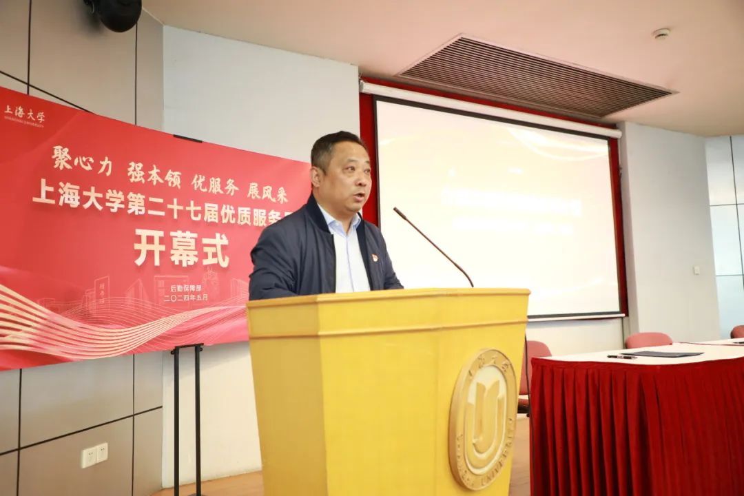 后勤保障部党委书记、副部长李坚介绍本届优质服务月的活动安排。