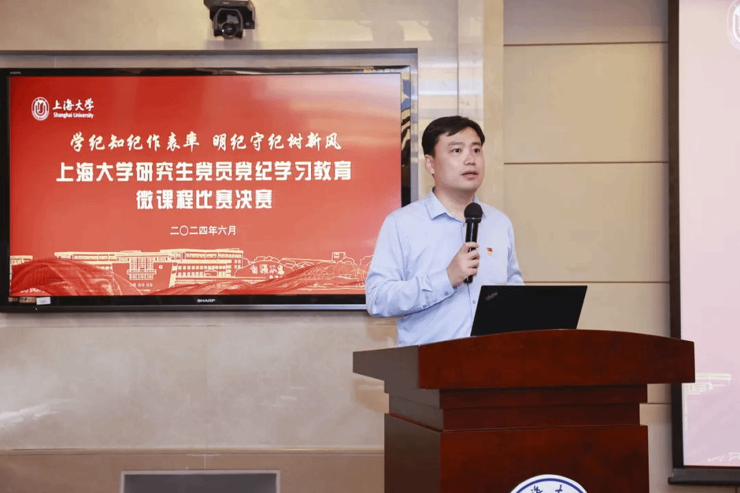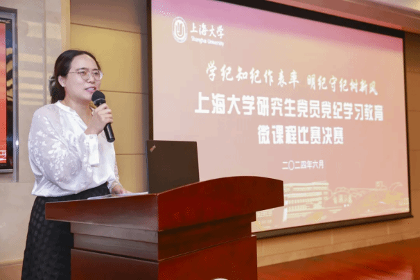 本次比赛以“学纪知纪作表率,明纪守纪树新风”为主题,各学院遴选推荐29门课程参加校级初赛,18门课程脱颖而出进入决赛。决赛中,各参赛研究生党员以党纪学习教育为主题,有的结合党章、党史,用青年研究生的视角解读新修订后的《中国共产党纪律处分条例》;有的讲述正面先锋故事进行激励鼓舞,引用反面典型进行警示警醒;有的结合科研工作、校风学风生动呈现师生党员知纪律己、担当奋进的精神风貌。