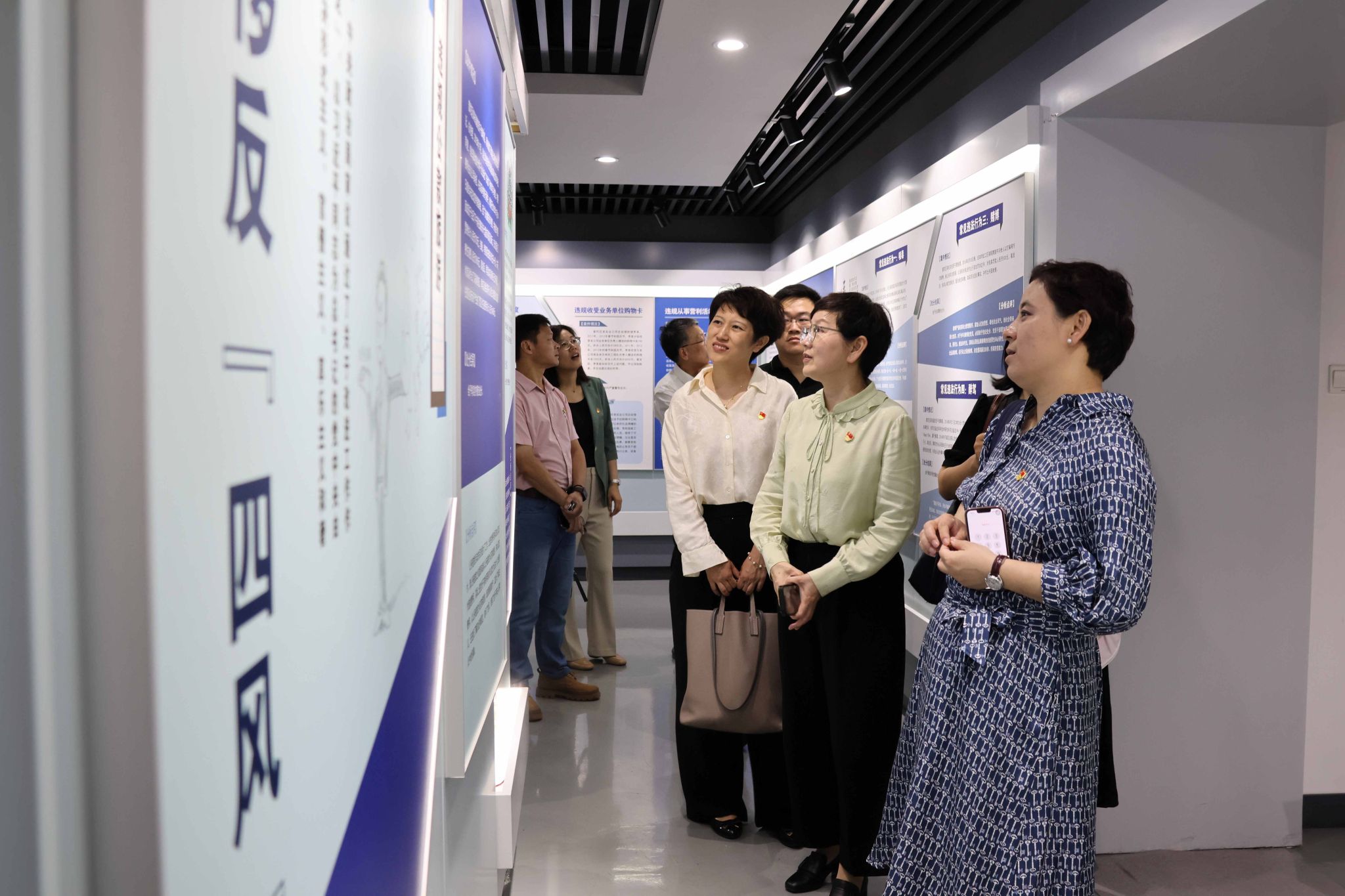本次联学活动第一站来到普陀区半马苏河驿站党群服务中心。在参观过程中,大家认真聆听工作人员的介绍,不时驻足观看、交流讨论。通过展示区的视频介绍和图文讲解,大家深入了解了半马苏河驿站党群服务中心的丰富功能和重要意义,对党群服务中心以党建引领为核心,整合各类资源,为党员和群众提供多元化、个性化服务,在推动区域发展、促进社会和谐等方面所发挥的积极作用有了更深入的了解。此次参观活动,让参加现场学习的党员们深刻感受到,半马苏河驿站党群服务中心所蕴含的强大红色力量和普陀温度,中心不仅是普陀区党建工作的重要阵地,更是凝聚党心民心、服务党员群众的温馨家园。大家纷纷表示,将以此次参观为契机,进一步增强对党建工作的认识和理解,学习普陀区“人靠谱、事办妥”的普陀精神,加大与普陀区“中华武数”重大科创平台的合作与交流,在今后的工作和生活中,积极发挥党员的先锋模范作用,以科技协同创新推动校地企深度合作,激发推动发展新质生产力的强大动能,为上海市和长三角区域的发展贡献自己的力量。
