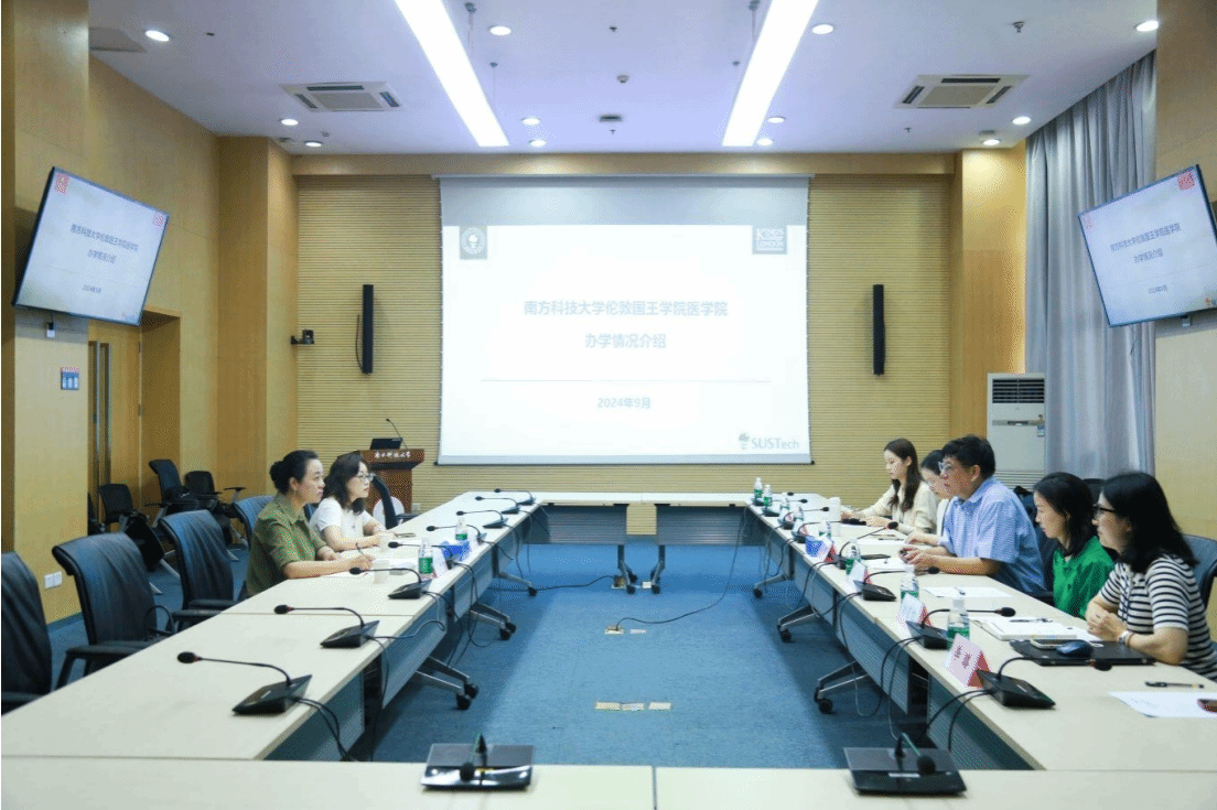 在深圳期间,调研组重点考察了南方科技大学医学院,创始院长张健教授介绍了医学院建设史。于雪梅副校长祝贺医学院经过短短八年发展就取得学科建设显著成果,同时,她结合伦敦国王学院联合医学院筹建过程,与对方交流了上大医学院国际化发展思路并听取可行性建议。