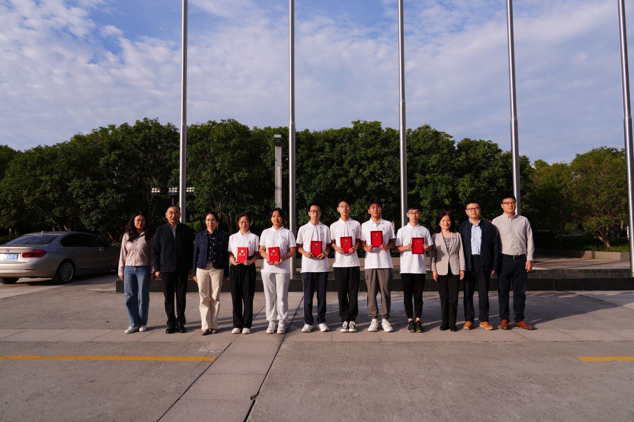 升旗仪式伊始,国旗卫士班旗手代表护送国旗入场,在全体师生的注视下,进行了庄严而肃穆的国旗、校旗升旗仪式。