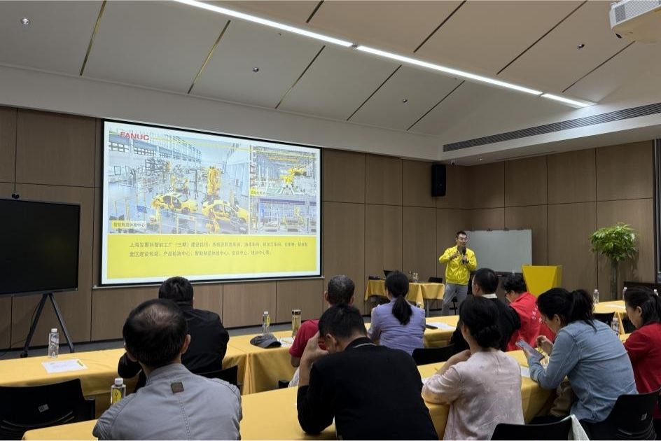 机器人作为新质生产力的典型代表,是传统产业转型升级的强大支撑和动力。上午,在继续教育学院校友、上海发那科机器人有限公司工程机械销售部吴正勇部长的引荐下,学工队伍集体前往上海发那科智能工厂(三期)进行参观。发那科机器人是全球领先的工业机器人制造企业之一,其产品和解决方案广泛应用于汽车、电子、重工等多个行业,和ABB、库卡、安川并列为全球“工业机器人四大家族”。学工队伍集体观摩了机器人整车制造、激光、汽车电子、智慧物流等行业的应用场景,直观体验了发那科全流程智能制造解决方案,全方位感受了智造魅力。
