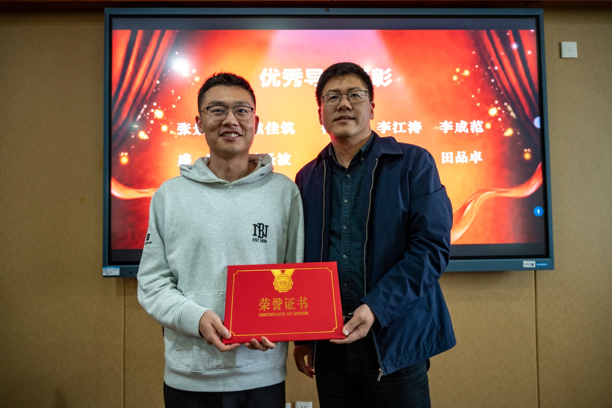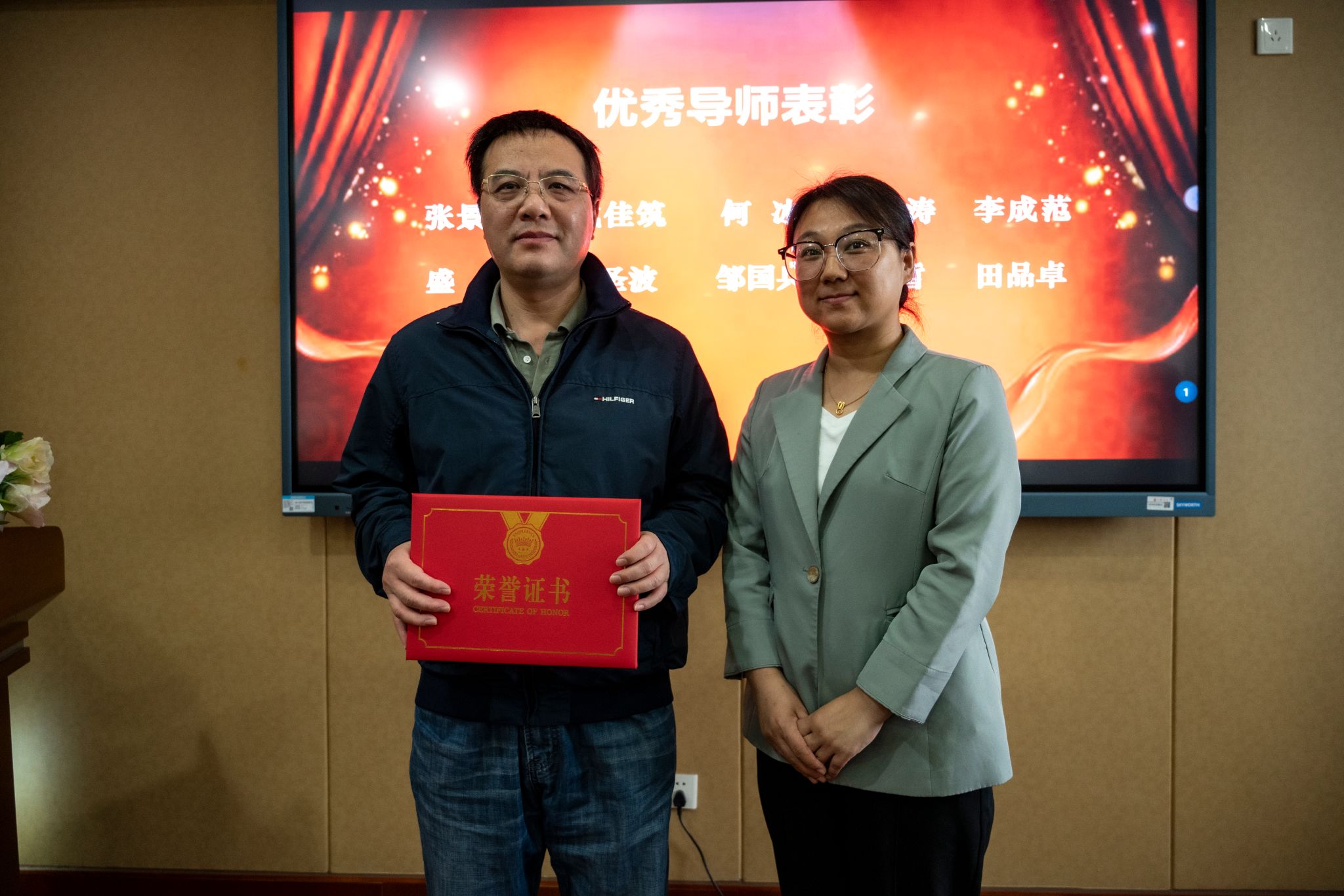 综合导师育人成果及前期学生评价调研问卷,学院评选出2023-2024学年10名优秀本科生全程导师:张景峤、戴佳筑、何冰、李江涛、李成范、盛斌、陈圣波、邹国兵、王皙、田品卓。本科生书院管理中心(“一站式”学生社区中心)副主任佟丽宁,学院党委书记朱宏涛,特邀党建组织员吴仲钢为导师们颁发荣誉证书。