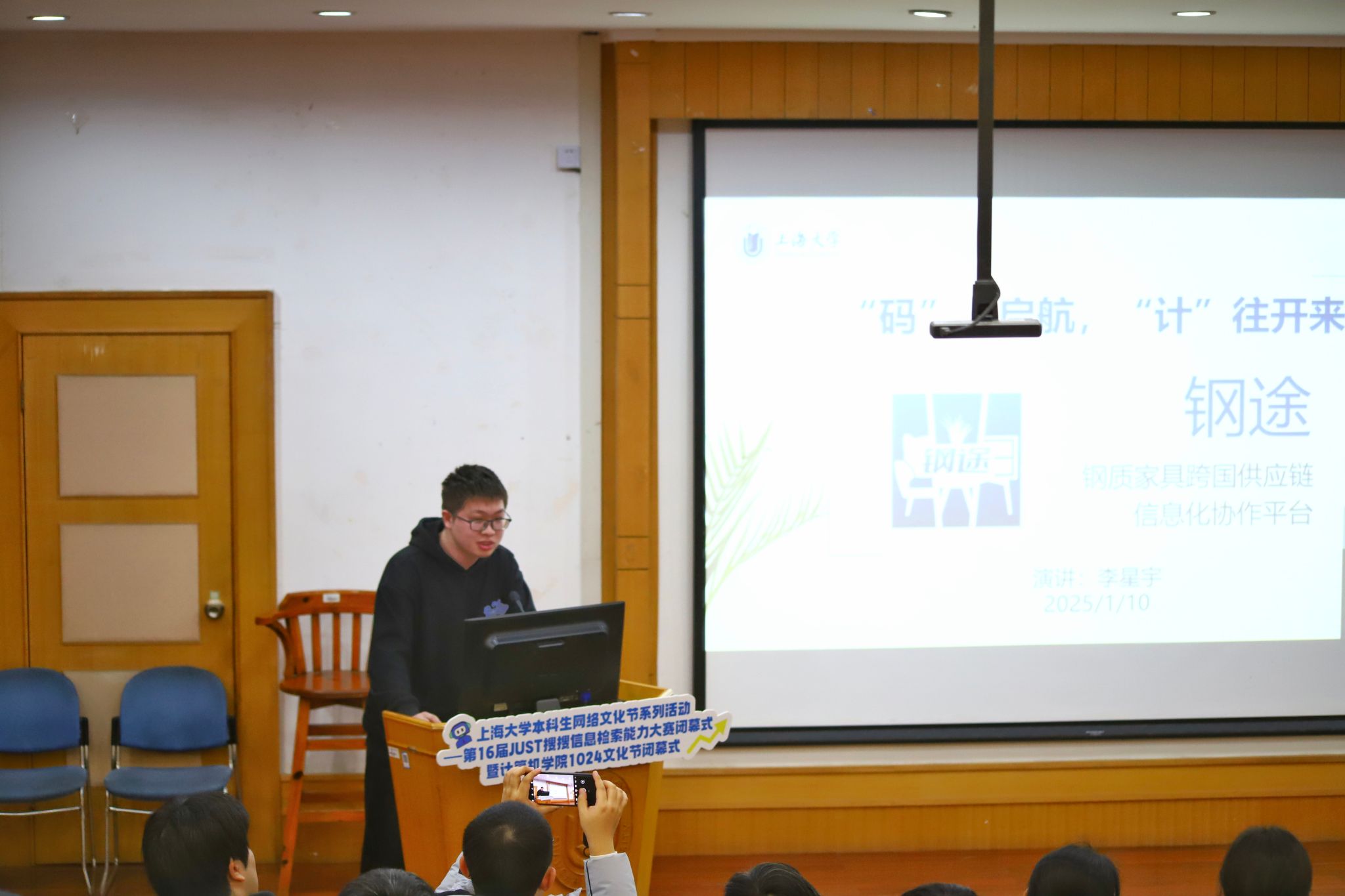 荣获大赛特等奖的选手,是来自通信与信息工程的李泽轩同学,在闭幕式上,他分享了自己的参赛经历与答题经验。