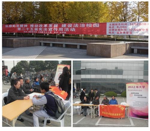 今年的“宪法宣传周”系列活动还包括在12月2日我校法学院李建勇教授为全校师生做《维护宪法权威,突出宪法至上——兼谈学习十八届三中全会精神》的主题报告等活动。在全校师生的积极参与下,各项活动正有序开展。