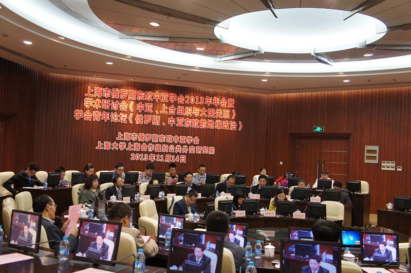 此次学术年会共分开幕式和学术研讨会两部分。开幕式由李伟主持,校党委书记忻平教授首先致开幕词,杨烨教授做年度工作报告。研讨会环节由范军教授担任主持。余建华、杨成、张丹华、王海燕、强晓云五位学者分别从以《中亚安全形势》、《中国的中亚研究:范式转移的机遇及挑战》、《哈萨克斯坦城市化发展战略研究》、《丝绸之路经济带区域经济发展》、《亚信会议的发展前景》做主题发言。与会代表就“丝绸之路经济带”构想实现的可行性与发展前景、2014年后阿富汗对中亚安全形势的影响、中亚问题研究范式的思考、中国公共外交的价值载体、中亚社会转型与城市化进程、亚信会议的有效性的等问题展开思想交锋。范军教授最后对发言和讨论做出点评,他指出:中亚问题研究应采取新的研究范式,体现出下面四个结构性权力包括安全结构、生产结构、金融结构和知识结构。