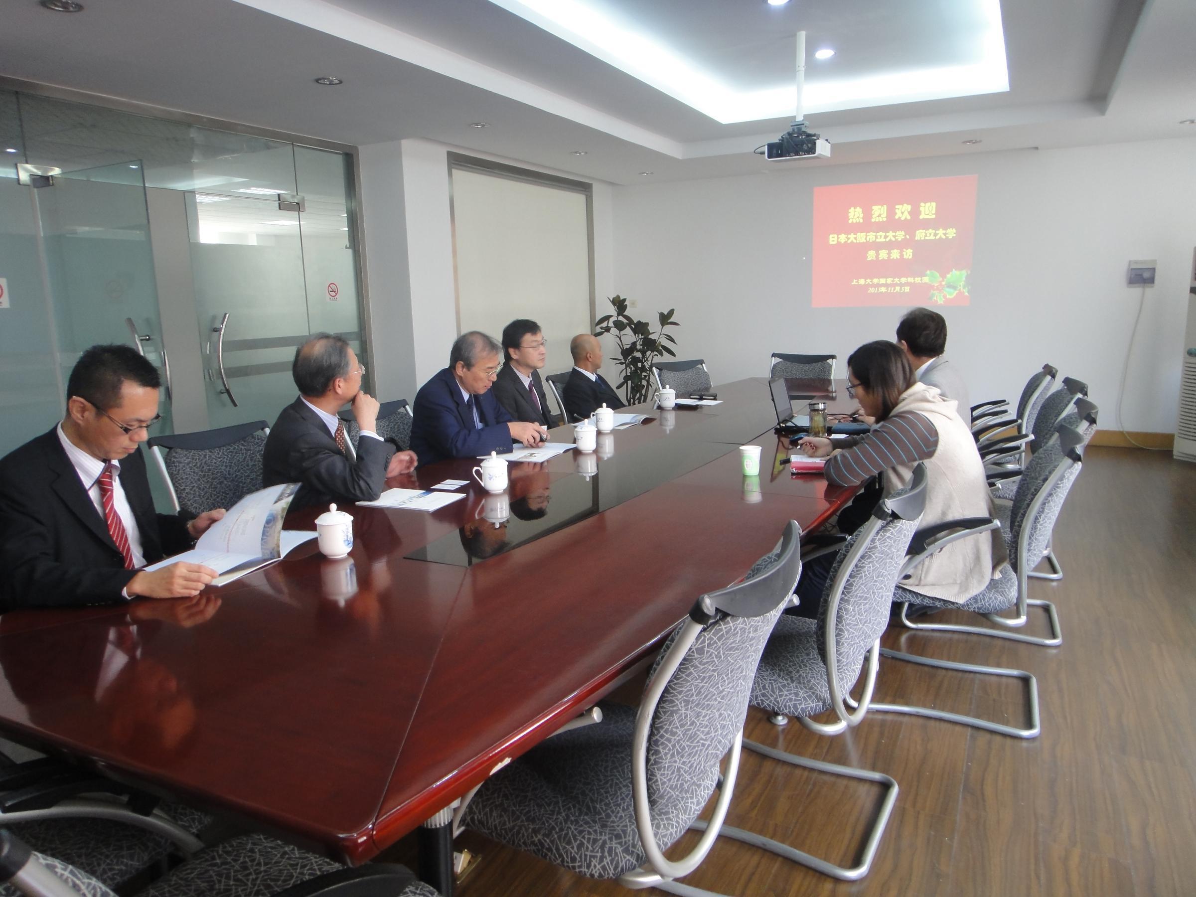 2013年11月5日,应2013年上海国际工业博览会的邀请,日本大阪市立大学副校长桐山孝信、大阪府立大学前副校长安保正一等人一行四人,在上海市教委张进老师的带领下,来上大科技园区参观访问。科技园区副总经理刘云超等人热情接到了来访者。