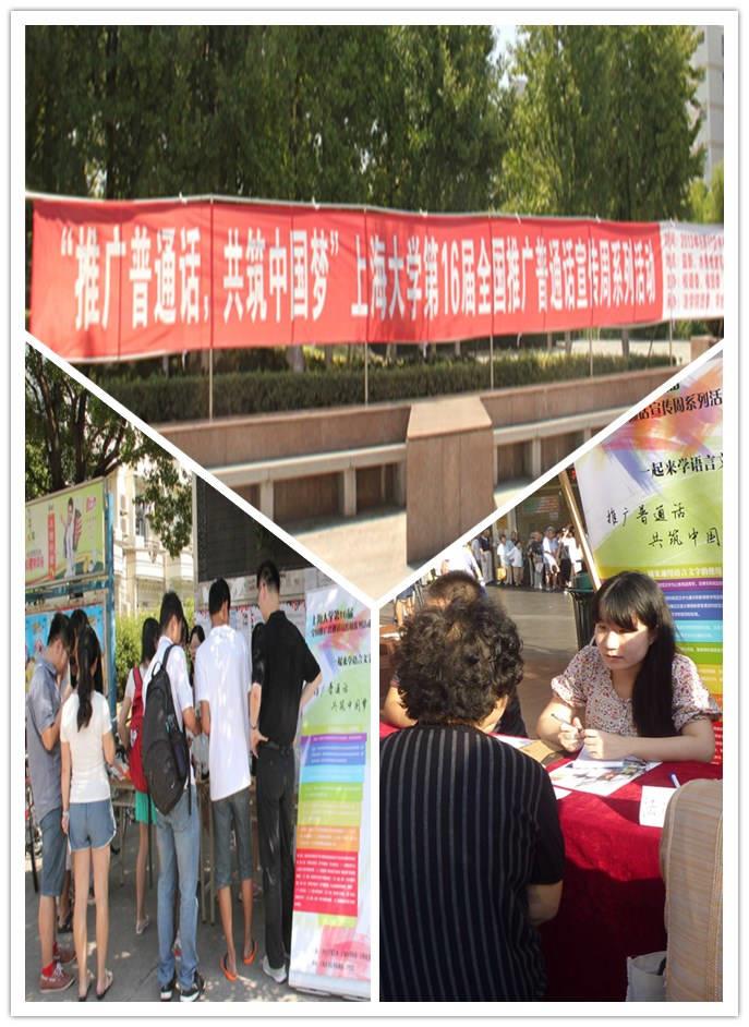 9月17日中午,校内宣传咨询活动在水秀、益新食堂前举行,校学生会和法学院团委、学生会的志愿者们向广大师生发放宣传单。宣传单的正面印有《国家通用语言文字法》关于“国家通用语言文字使用”的规定,反面则以“读万卷书,行万里路”为标题,向广大师生推荐《普通话水平测试专用教材》、《朱镕基上海讲话实录》、《大数据时代》等畅销书籍,鼓励大家在信息社会仍然要多读些优秀的纸质书。
