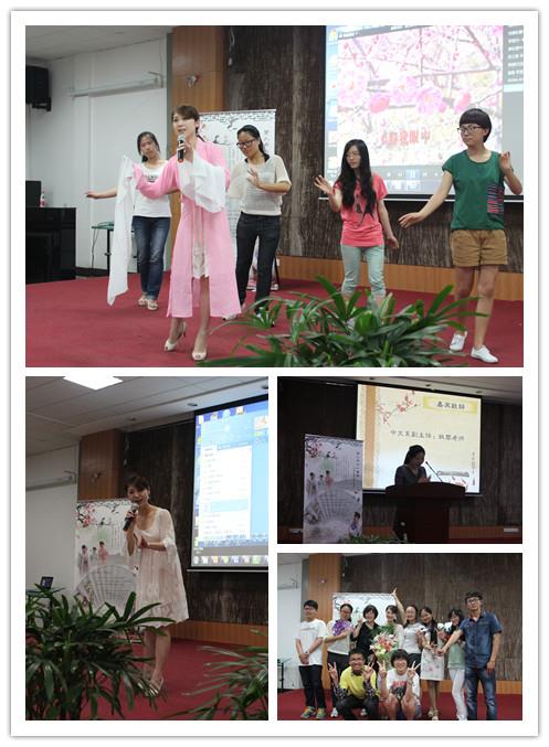 引爆全场的要数李旭丹的表演了,在《黛玉葬花》唱段中,她神态凄美、唱腔空灵。“花谢花飞飞满天,红消香断有谁怜?游丝软系飘春榭,落絮轻沾扑绣帘。闺中女儿惜春暮,愁绪满怀无释处。手把花锄出绣帘,忍踏落花来复去?柳丝榆荚自芳菲,不管桃飘与李飞。”一位同学在微博上这样评论到:“听着看着,醉得一塌糊涂!有机会去看丹姐的演出!漂亮如仙人”。很多观众都不安分地跑到台前拿起相机拍摄照片和影像,到此整个活动被推到高潮。
