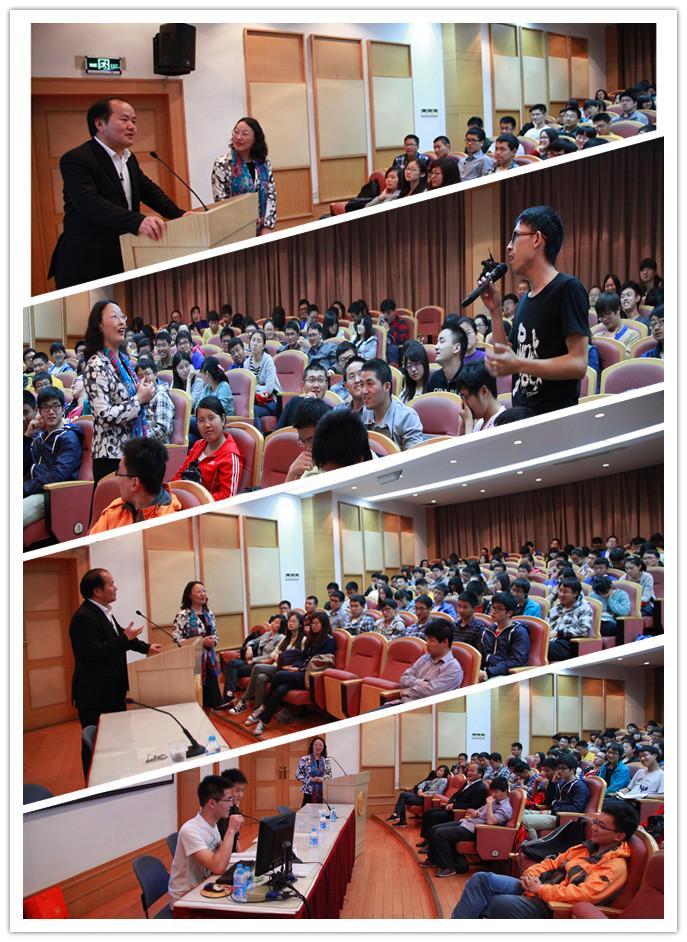 一开始,两组学生围绕“18大精神与中国特色社会主义民主政治”主题阐述了观点。顾晓英老师主持了学生互评环节,引导20多名学生先后表述各自观点。接着,顾老师和徐教授对学生发言进行点评。嘉宾徐教授还结合十八大精神,从历史学学科背景出发,深入浅出地为学生带来中国特色社会主义民主政治进程和优越性的解读,他还回答学生们关心的热点问题。